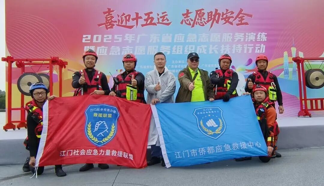 10月22日,“喜迎十五运,志愿助安全”——2025年广东省应急志愿服务演练暨应急志愿服务组织成长扶持行动举行,记者了解到,我市社会应急队伍——江门市侨都应急救援中心参与了水域救援科目演练,并以优异表现圆满完成演练任务。